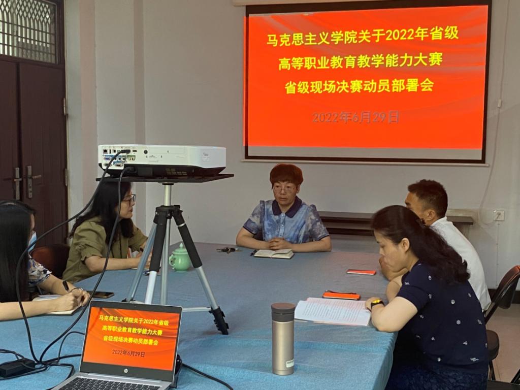 为落实立德树人根本任务,深化“三教改革”,“岗课赛证”综合育人,全面促进教师教学能力提升,增强职业技术教育适应性。6月29日下午,我院在行政楼402办公室召开2022年省级高等职业教育教学能力大赛省级现场决赛动员部署会,会议由梁杰院长主持。
