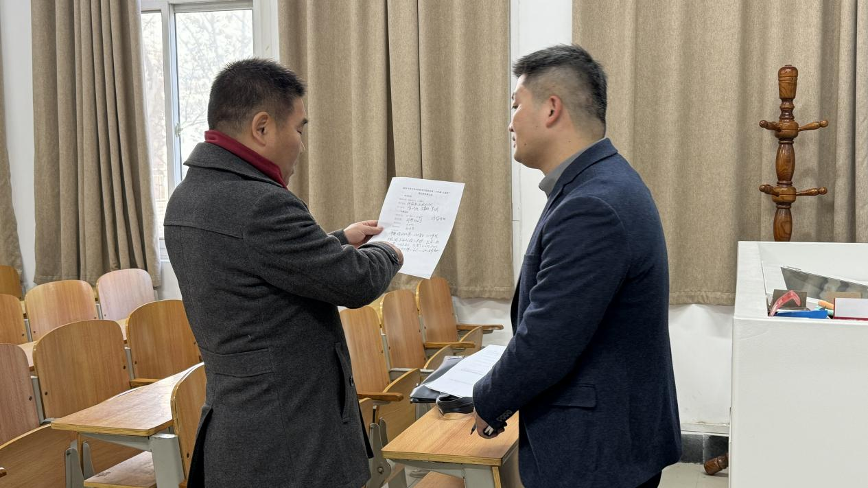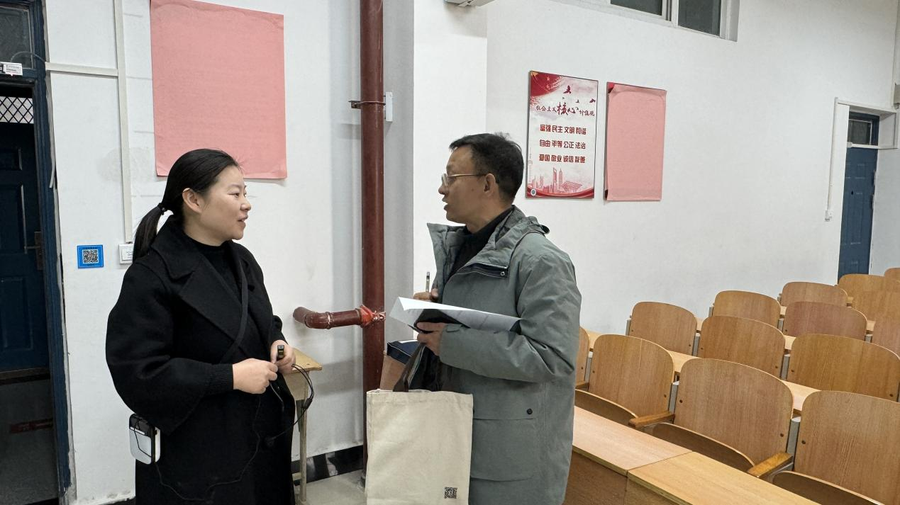 本次调研,专家组采取随机抽取、推门听课的方式,听取了我院段伟伟老师的“思想道德与法治”和谷世飞老师的“形势与政策”两门课程。听课过程中,调研组专家认真记录课堂情况,细心观察学生精神风貌和学习状态。