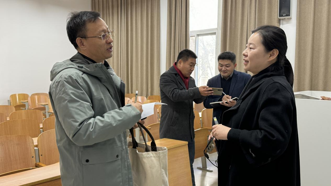 根据河南省委教育工委、河南省教育厅《关于开展2023年度全省高校秋季学期思政课“大听课 大调研”活动的通知》安排,11月23日上午,2023年度全省高校秋季学期思政课“大听课 大调研”第五调研组专家中原工学院ylzzcom永利总站院长随新民、河南工业大学ylzzcom永利总站副院长丁建波、郑州财税金融职业学院思政部教授李斌到我校开展思政课听课调研活动。校党委书记李桂贞对专家的到来热烈欢迎,马院党总支书记马金伟、马院教学副院长胡海涵陪同听课调研。