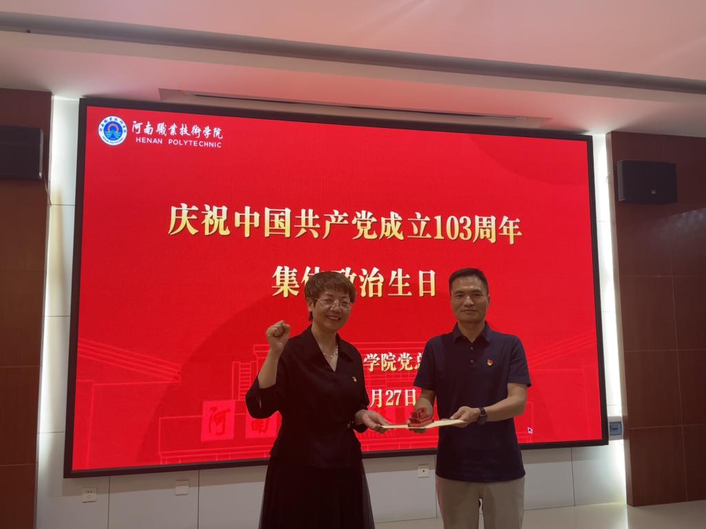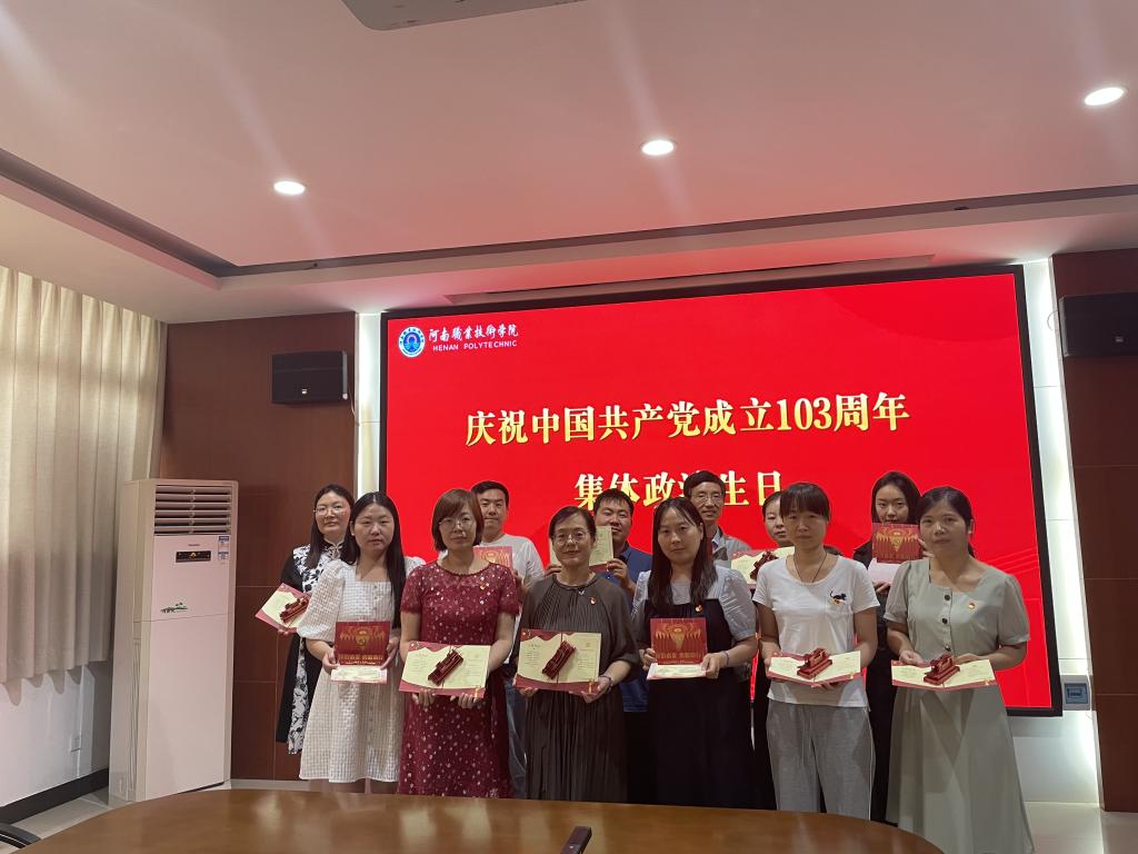 “政治生日”是一种政治仪式,通过这种庄严的仪式,强化教师党员的身份意识、宗旨意识和责任意识,进一步增强党员的归属感、荣誉感和责任感,帮助党员补足精神之“钙”,激励大家时刻不忘初心、牢记使命,踔厉奋发、勇毅前行,用实行动践行入党誓词,在”双高计划“提档晋级和申办职教本科的征程中挺膺担当、建功立业,为现代化河南建设培养更多高素质技术技能人才。(撰稿:王爱巧,审稿:马金伟)