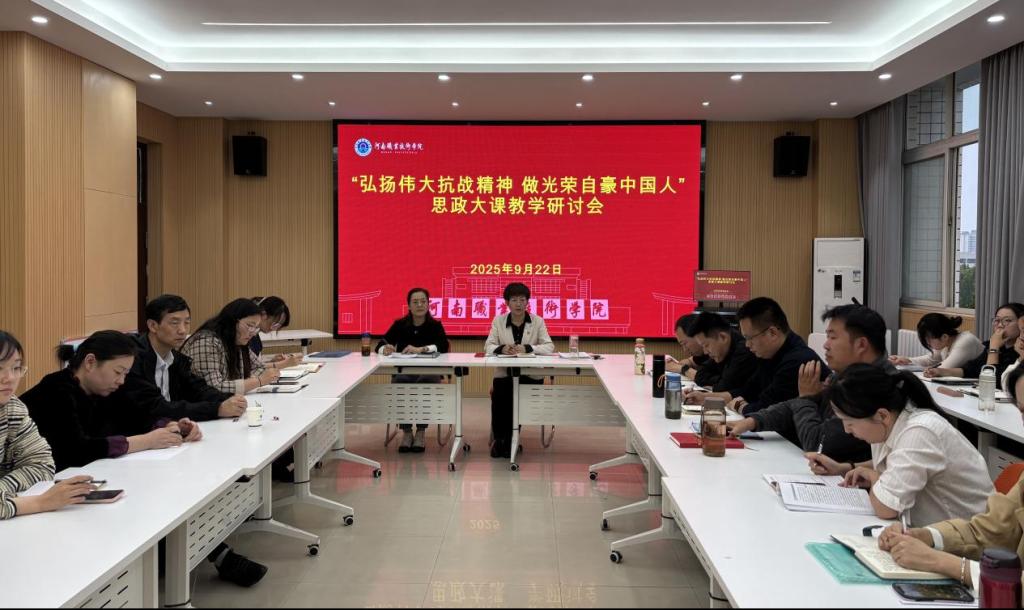为深入贯彻落实立德树人根本任务,推动伟大抗战精神融入思政课教学,9月22日下午,ylzzcom永利总站组织召开“弘扬伟大抗战精神”专题教学研讨会。会议由学院副院长胡海涵主持,ylzzcom永利总站全体思政课教师参会